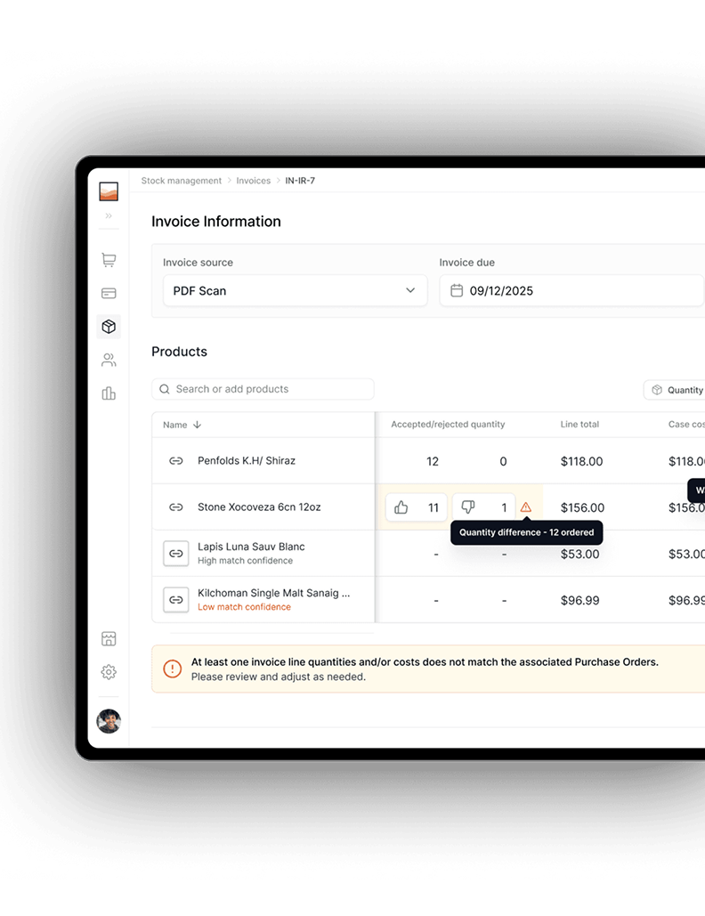 Upload invoices quickly via photo or PDF to auto-update inventory.